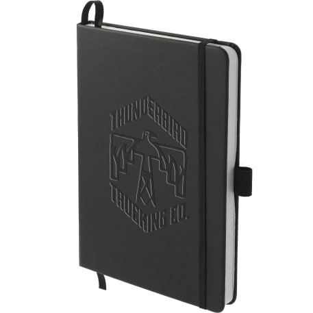 5.5” x 8.5” Mela Bound JournalBook ® features a uniquely crafted with 39% of apple components. Color matching elastic closure, pen loop and ribbon page marker. 80 sheets of lined recycled paper. Back document pocket. Through a partnership with 1% For The Planet, one percent of sales of all EcoSmart® products will be donated to environmental nonprofits.