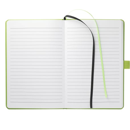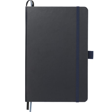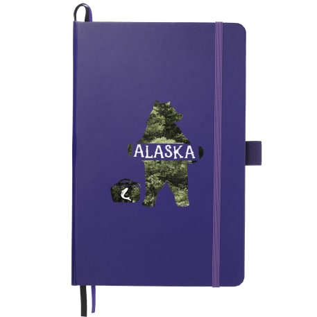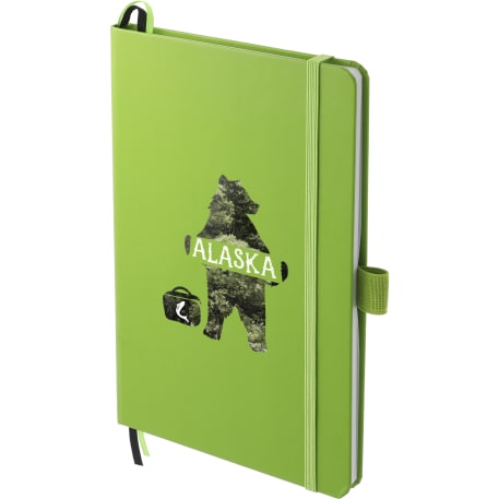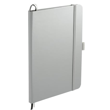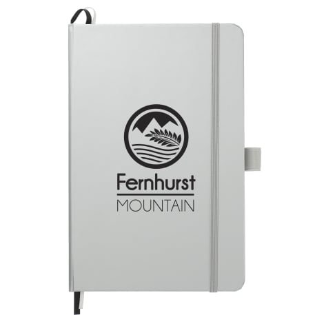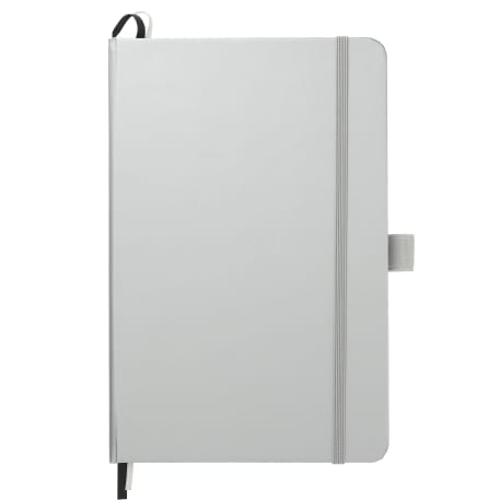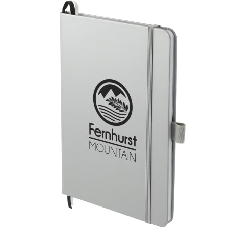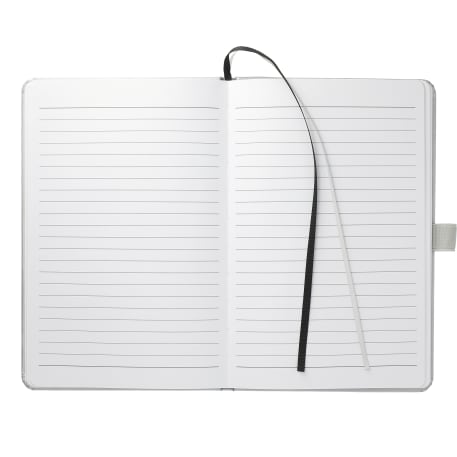 The "5.5" x 8.5" FSC Mix Bound JournalBook® features a FSC-certified paper hard cover with 80 sheets of white FSC-certified, soy-based ink lined paper. Includes color-matching elastic closure, pen loop and ribbon page marker . Through a partnership with 1% For The Planet, one percent of sales of all EcoSmart® products are donated to environmental nonprofits. Digital Inkjet not available on Silver color.