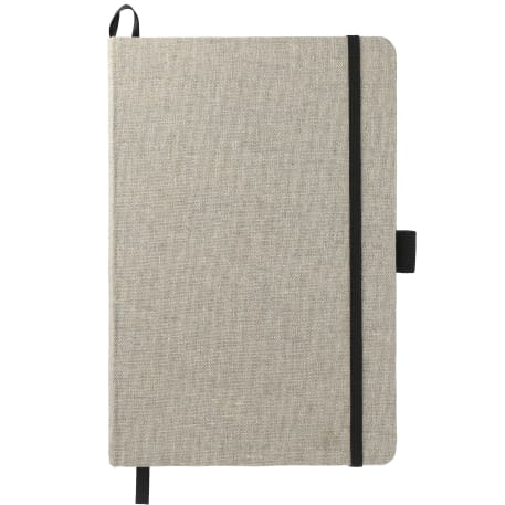 The 5.5" x 8.5" Recycled Cotton Bound JournalBook® is perfect for all of your notetaking needs. Features a hard cover made from recycled cotton. Natural color elastic closure, pen loop and ribbon page marker. 80 sheets of FSC® Mix cream lined paper. Back document pocket. FSC® label printed inside. Through a partnership with 1% For The Planet, one percent of sales of all EcoSmart® products are donated to environmental nonprofits.
