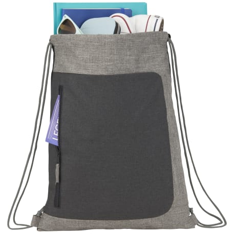 The Reclaim Recycled Drawstring Bag exterior material is made from 100% rPET. This drawstring features a zippered front pocket and cinch closure. Through a partnership with 1% For The Planet, one percent of sales of this and all EcoSmart products will be donated to nonprofits dedicated to protecting the planet.