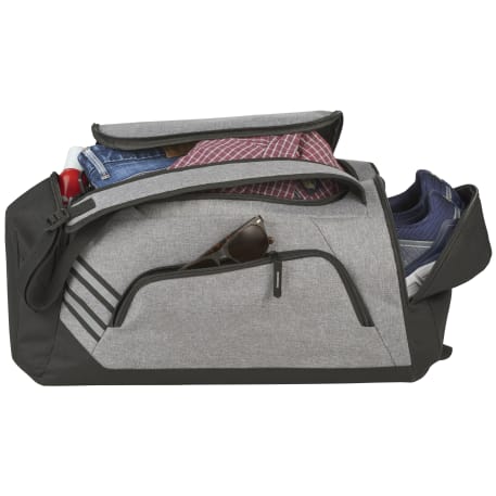 The Sebring Convertible Graphite Duffel gives you the best of both worlds - a duffel AND a backpack. This sporty convertible duffel features a roomy zippered main compartment, one side zippered pocket, reflective accents, a side zippered shoe pocket, and a front zippered pocket. The back includes a large mesh water bottle pocket.