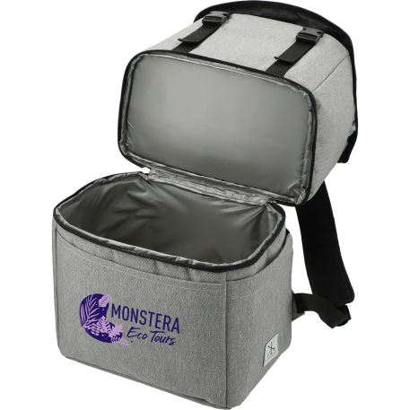 Merchant & Craft - simple classics for your modern lifestyle. The Merchant & Craft Revive rPET Backpack Cooler features RPET 600d main material made from recycled plastics such as water bottles. The top section is designed to hold dry items and is not insulated. The lower section is insulated for lunches or beverages and can hold up to 12 cans. PEVA lining. Easily identify your cooler with the interior ID label. Through a partnership with 1% For The Planet, one percent of sales of EcoSmart products will be donated to nonprofits dedicated to protecting the planet. Note: PEVA lining, webbing handle and webbing trim are not made with recycled materials.