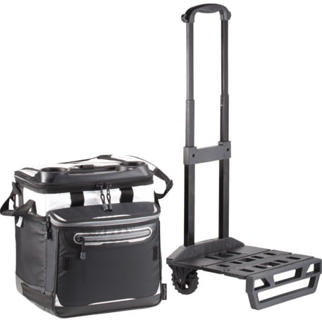Made with Deep Freeze® high performance insulation, an integrated heat barrier and Cold Block™ base help keep still ice for 3 days! Main compartment plus front pocket hold up to 58 cans. Easy access lid, beverage station and all terrain cart with retracted, telescopic handles make this the ultimate cooler for any event.
