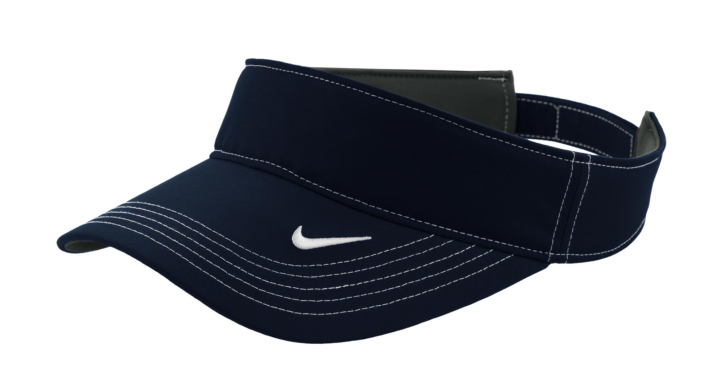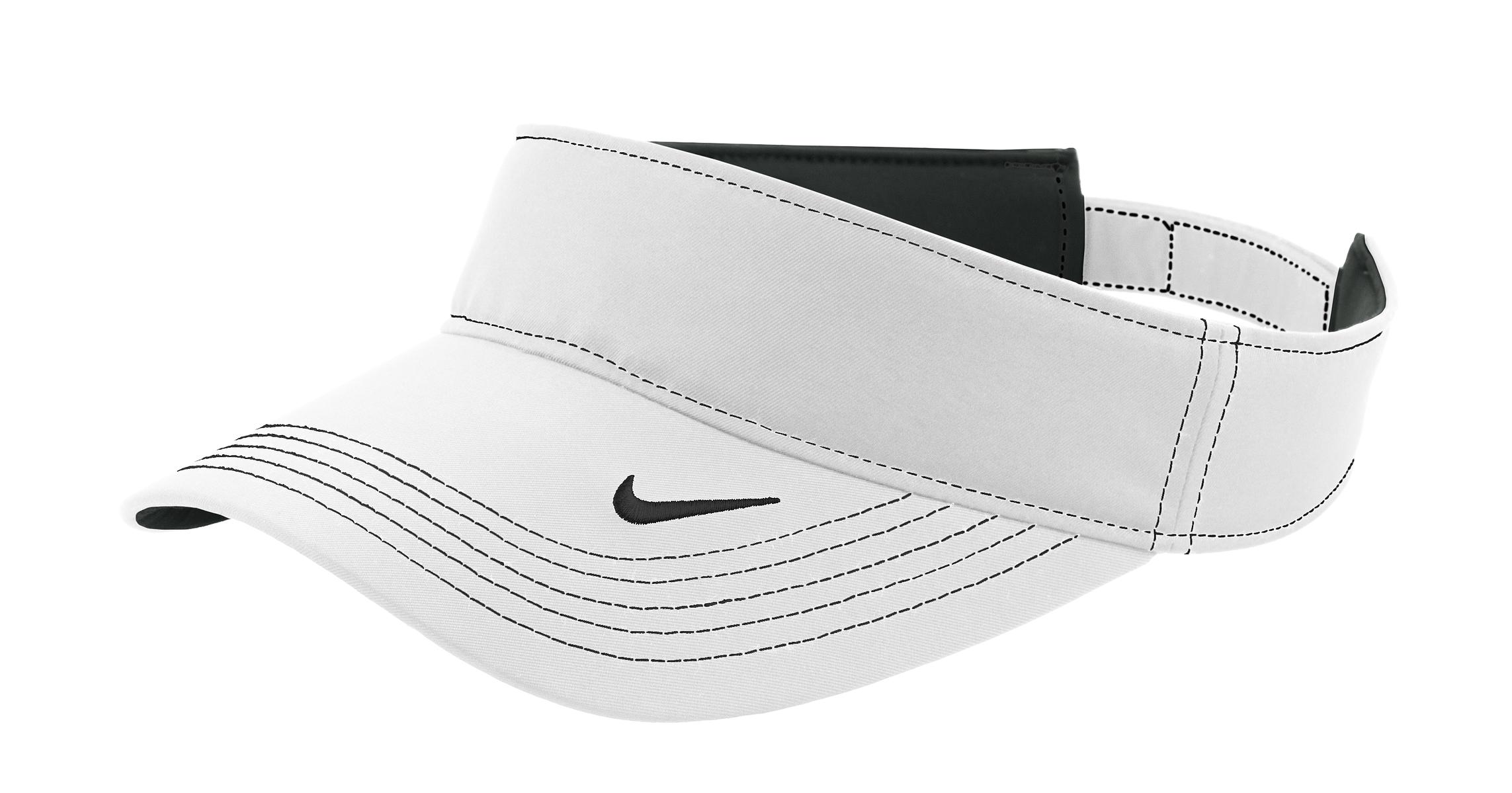 A high-performance three-panel visor built with Dri-FIT moisture management technology. Contrast stitching adds interest while the hook and loop closure ensures a custom fit. The contrast Swoosh design trademark is embroidered on the bill. Front panel measures approximately 1.875 h x 10 w. Made of 100% Dri-FIT polyester twill.