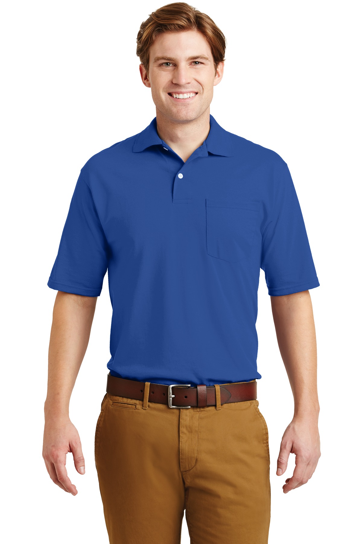 5.4-ounce 50/50 cotton/poly preshrunk jersey with stain-resistant finishSpotShield fabric repels water and most oil-based spillsTag-free label Welt knit collar that resists curling 2-button placket with bottom box reinforcement Pearlized buttons Double-needle sleeves and hem Oxford is 47/53 Ash (formerly Birch)