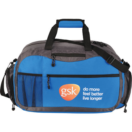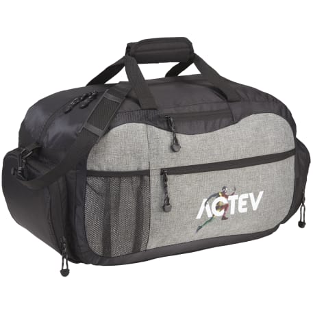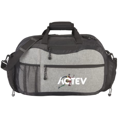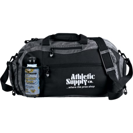 Side shoe or wet pocket. Front access mesh water bottle pocket. Top zippered valuables pocket. Detachable, adjustable shoulder strap.