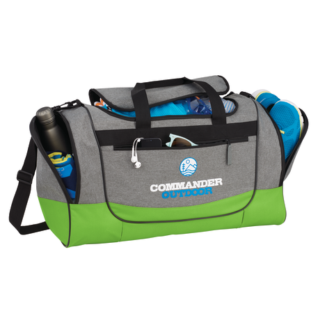 The Crew 23” Graphite Sport Duffel has a pocket for everything. This duffel features a large zippered main compartment and a zippered front pocket. The two zippered side pockets are large enough to carry a pair of shoes. The removable, adjustable shoulder strap make this duffel the perfect gym companion.