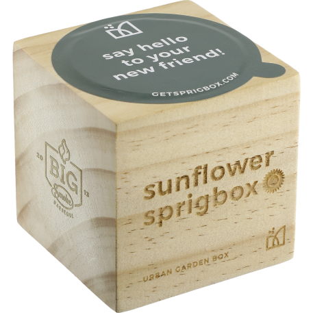 This Sunflower Sprigbox is an all-inclusive garden kit containing natural seeds and a special growing media. The only thing missing is water and a sunny windowsill. Sprouts will begin to show in 7-14 days and your flower might bloom after 3 months. Water daily and enjoy watching it grow! Due to the nature of the wood material, variations in color and imprint may occur.