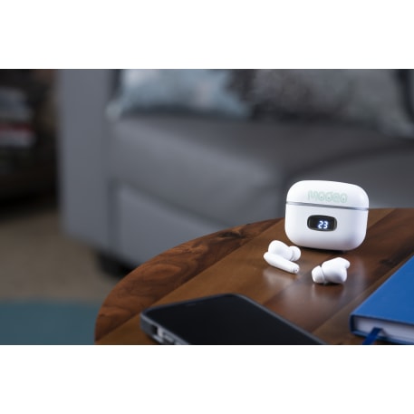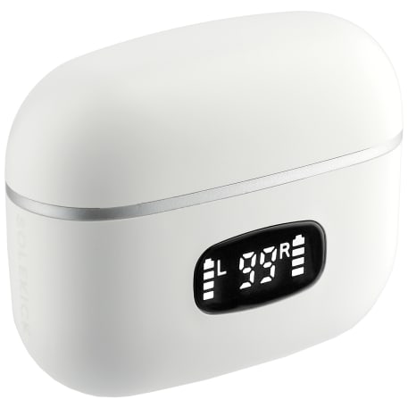 The Solekick True Wireless Auto Pair Earbuds features include Bluetooth 5.0, Auto Pairing, and Auto Power-On. Once the charging case is opened, the earbuds power on and automatically sync to each other! The case also doubles as a power bank for your earbuds and can be charged with the included USB-A-to-Type-C cable. On the center of the case is an LED display screen that indicates the battery percentage of the case and earbuds. Once the 400mAh battery of the case is charged, it will charge the earbuds 3x from 0-100%. With over 4hrs of playback time at max volume on a single charge, these earbuds are a must-have for anyone needing earbuds for continuous use throughout the day. The ergonomic design of the earbuds and silicone tips keeps them in place on the go. The earbuds have built-in music controls and dual microphones for hands-free operation. It takes 1.5hrs to charge the earbuds from 0-100%. The case can be charged in under 2hrs.