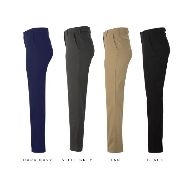 Pantalones de algodón con spandex perfectos para organizaciones o cargos que permitan un look casual. No solo cumplen con los requisitos del trabajo, sino que el spandex agrega cierta flexibilidad y comodidad durante todo el día.