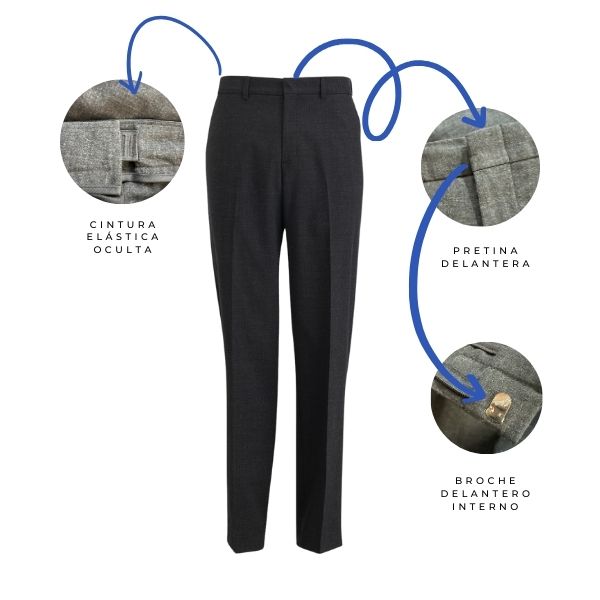 Pantalones para hombre con frente delantero plano, elaborados en tejido con mezcla de lana, Pretina con ajuste elástico oculto para brindar un extra de comodidad, permite hasta 2 pulgadas de ajuste adicional.