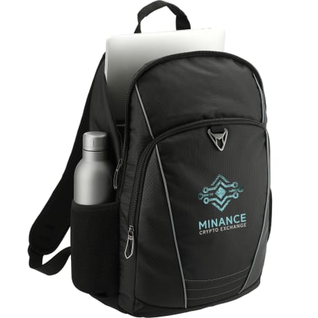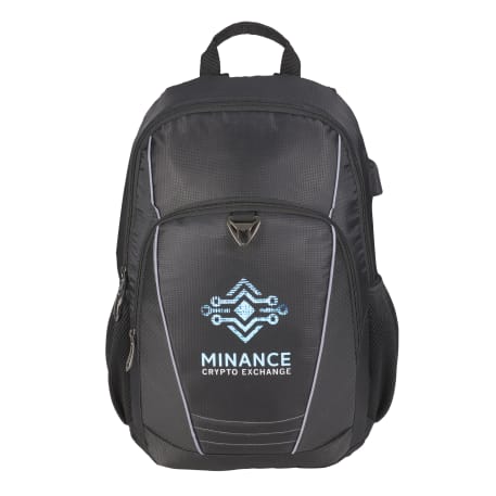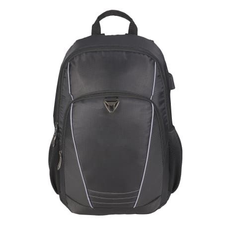 The Tahoma 15” Computer Backpack features a side USB port with cable, padded 15” laptop sleeve and perforated accents. Get extra storage with two side mesh water bottle pockets and a zippered front pocket with organization panel. This backpack also includes a padded back panel, a trolley sleeve and padded, adjustable shoulder straps.