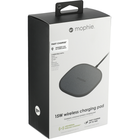 The mophie® 15W Wireless Charging Pad includes a fast wireless charging pad and delivers up to 15W of wireless power to Android devices and up to 7.5W for All iPhone 8/X/11/12/13 Series. To charge an iPhone series before iPhone 8 with wireless technology, an external wireless charging receiver or receiver case is required. It works with most plastic phone cases on. Packaged in a premium gift box. Qi Certified.