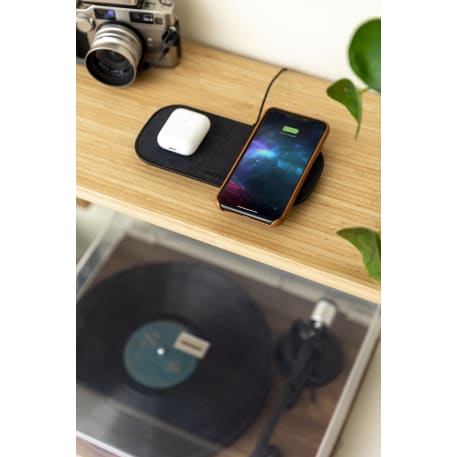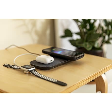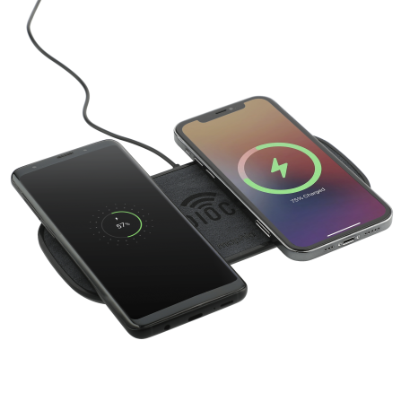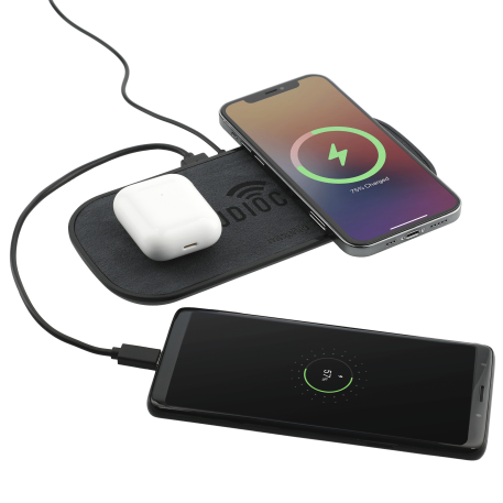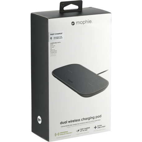 The mophie® 10W Dual Wireless Charging Pad could charge three devices at the same time. Two wireless charging locations deliver up to 10W of power to two enabled devices and one extra USB-A port to charge a third wired device. If want to charge an iPhone series before iPhone 8 with wireless technology, an external wireless charging receiver or receiver case is required. It works with most plastic phone cases on. 4.9-ft long wall adapter is included. Packaged in a premium gift box. Qi Certified.