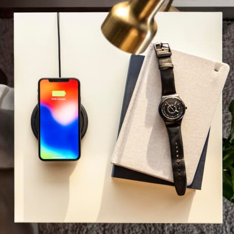 The mophie® 10W Wireless Charging Pad features fast charging and supports three different wireless charging modes: 7.5W for All iPhone 8/X/11/12/13 Series; 10W for Samsung Galaxy S9/S9 Plus/S8/S8 Plus/Note 8/9 and more, and 5W standard charging for all enabled devices. To charge smartphones without built-in wireless technology, an external wireless charging receiver or receiver case is required. Works with most plastic phone cases on. Qi Certified.
