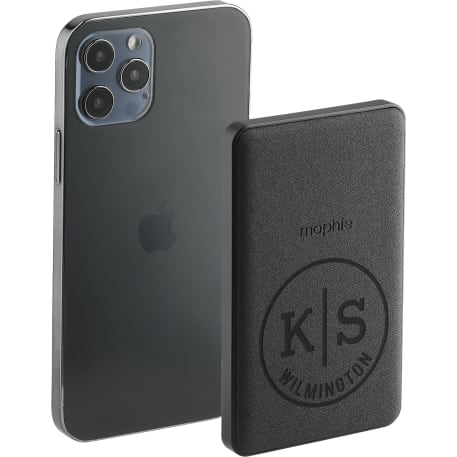 The mophie® Snap 5000 mAh Wireless Power Bank has a rechargeable lithium polymer battery that works as a charging pad or a regular power bank on the go (18.5W). The inside magnetic hold ensures accurate placement for iPhone 12/13 series. The included snap adapter can easily attach to the back of a non-MagSafe compatible iPhone or any other smartphones. The Type-C port is compatible as an input and output for charge and discharge. USB-A-to-Type-C cable included. Works with most plastic phone cases on. Packaged in a premium gift box. Power banks are permitted in carry-on luggage only, and at the discretion of TSA agents. Please charge power bank before initial use.