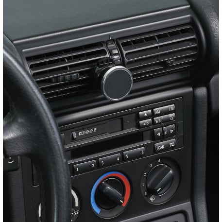 This metal magnet phone mount can easily and securely hold your phone while in a car. The mount has 4 built-in magnets for a secure hold. The metal plates are provided to place directly on the back of your phone or phone case. The magnets hold best when they are on the exterior of the phone or case. Do not place magnet under a thicker case, as the magnetism will not be strong enough to hold. The clip is intended to be placed in your car vent. Product ships in plastic tray, no polybag.