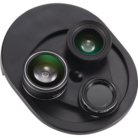 The lens kit features 4 different lens types. This include fisheye lens, wide lens, macro lens, and CPL lens (which eliminates stray light and produces a more natural image). Simply place the set on your smartphone and twist the base to try all 4 different lens.