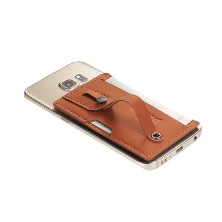 Vienna RFID Phone Wallet with Strap can stick to the back side of a phone to hold your ID and Credit Card. RFID function to keep your identify safe. Limited to hold 2 cards. The strap is to hold your phone steady with your finger.
