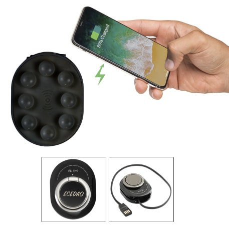 The Cling Wireless Charging Pad allows you to charge your smartphone wirelessly without having to lay your phone down. It has an integrated cable that plugs into a power source and silicone suction cups that attach to your phone for charging. A metal ring is also attached to the back that can be used for holding your phone or used as a stand. Supports 5W wireless charging for devices including (but not limited to): All iPhone 8/X/11/12/13 Series *Samsung Galaxy Note5/S6/S6 Edge/S6 Edge+/S7/S7 Edge/S8/S8+/S9/S9+/Note9 * Google Nexus 5/6/7 * HTC Droid DNA, 8X * LG G3/G4, Lucid 2/3 * Nokia Lumia 920/930 *. If you want to charge a phone without wireless technology, an external wireless charging receiver or receiver case is required. It works with most plastic phone cases on.