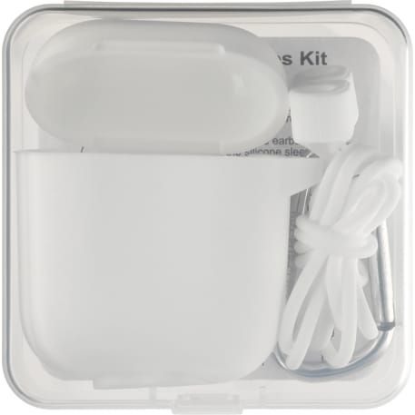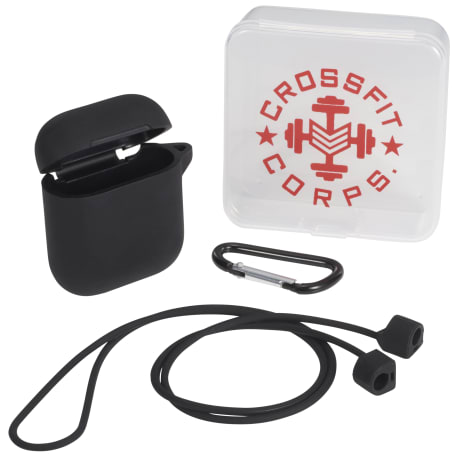 This airpod accessory kit includes a protective Airpods 2 silicone case with carabiner and a silicone headphone strap. The silicone case is designed for the Aipods 2 and offers scratch protection for the case. The flexible silicone strap is used to keep your Airpods and other wireless earbuds around your neck. Airpods is a registered trademark of Apple Computer, Inc