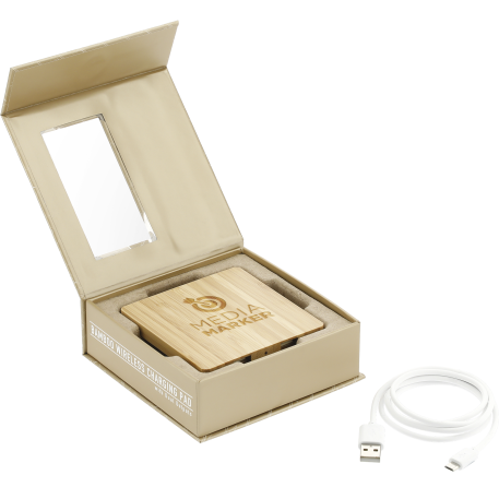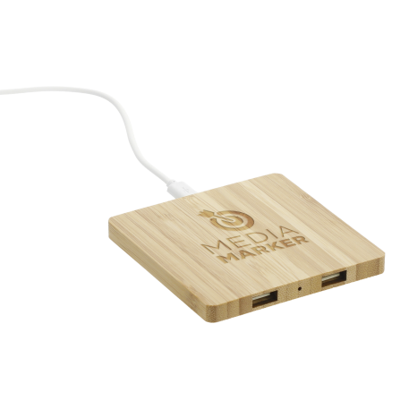 The Bamboo Wireless Charging Pad with Dual Outputs allows you to charge your smartphone without the cables and charge other phones with two USB output ports at the same time. Supports wireless charging at up to 5W for devices including (but not limited to ): All iPhone 8/X/11/12/13 Series * Samsung Galaxy Note5/S6/S6 Edge/S6 Edge+/S7/S7 Edge/S8/S8+/S9/S9+/Note9 * Google Nexus 5/6/7*. If you want to charge an iPhone series before iPhone 8 with wireless technology, an external wireless charging receiver or receiver case is required. It works with most plastic phone cases on. Dual Outputs: 5V/1.5A max. Includes 39" 3A USB to Micro charging cable. Packaged in a FSC certified premium gift box. Due to the nature of the bamboo material, variations in laser imprinting quality may occur. Through a partnership with 1% For The Planet, one percent of sales of all EcoSmart® products are donated to environmental nonprofits.