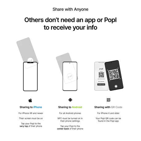 The best part? The other person doesn’t need an app or a Popl to receive your info!