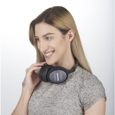 Become immersed in your music with the ifidelity Bluetooth Headphones w/Active Noise Cancellation. These headphones deliver premium stereo sound up to 16 hours at max volume. When the active noise cancellation is turned on it will block out up to 20-22db of sound. Allowing you to enjoy your long flight, train ride, or day in the office without any disruptions and in comfort with the memory foam earpads. The built in music controls and microphone allow you to control your audio and answer a call without reaching for your phone. With a collapsible and flexible design the headphones can be carried in the provided EVA carrying case or around your neck. Music can be enjoyed through Bluetooth or with the provided 47’ 3.5mm Aux Cable. Playback time at max volume with ANC On: 8hrs. Charging Time: 3hrs Bluetooth Version 4.0. Micro USB Cable provided. Bluetooth working range is 10 meters (33 feet).