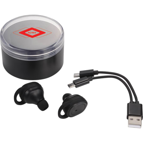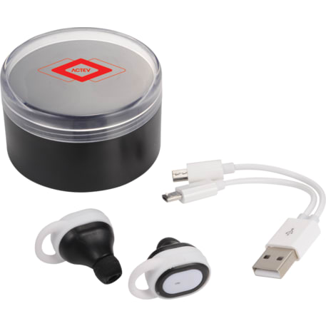 The Tully True Wireless Earbuds and Case are the future of Bluetooth earbuds. As you see there is no wire connecting the earbud, making them truly wireless earbuds. The carrying case is perfect for storing your earbuds and micro usb charging cable. With over 2 hours of playback time these earbuds are a must have for any traveler. The ergonomic design of the earbuds keeps them in place on the go. Bluetooth working range is 10 meters (33 feet). Charging time is 1hr for the earbud.