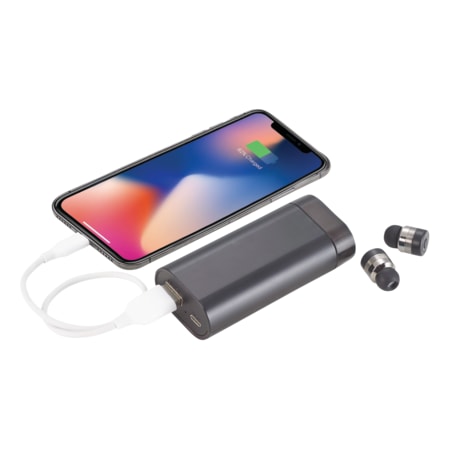 The Light Up Logo TruWireless Earbuds and UL Powerbank are the future of Bluetooth earbuds. As you see, there is no wire connecting the earbuds. Making them true wireless earbuds. The carrying case also doubles as a powerbank. Once the case is charged it can be used as a portable charger for your earbuds and smartphone. The case features a 2000mAh battery. With over 3 hours of talk time these earbuds are a must for any traveler. The ergonomic design of the earbuds keep them in place on the go. It takes 2hrs to charge the earbuds from 0 to 100%. When the front of the powerbank is decorated via Laser a LED light will appear, making your logo light-up! Bluetooth working range is 10 meters (33 feet). Bluetooth version 4.2. This item must be lasered to reveal the light up function.