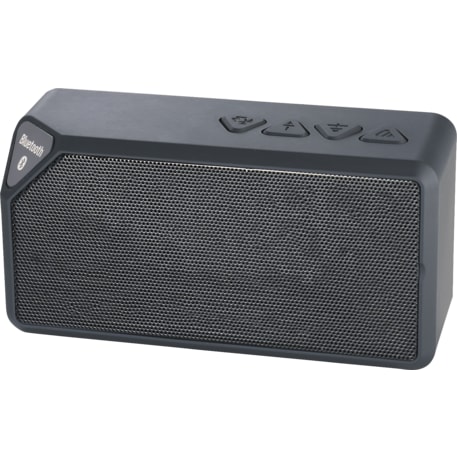 Power your music with this Bluetooth Speaker! Quality sound in a small form factor that plays your music or other audio from a Bluetooth enabled device or by a 3.5mm audio input, making it compatible with just about anything that plays music. Perfect for anyone that travels and is on-the-go or it can simply sit at a desk in an office setting. Bluetooth working range is 10 meters (33 feet).Enjoy up to 2hrs. of music at max volume on a single charge. It takes 2.5hrs to charge the speaker from 0 to 100%. This product is also available with a custom wrap for the packaging. See 7198-99 Jabba Bluetooth Speaker with Full Color Wrap.