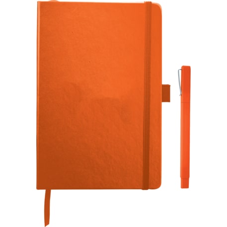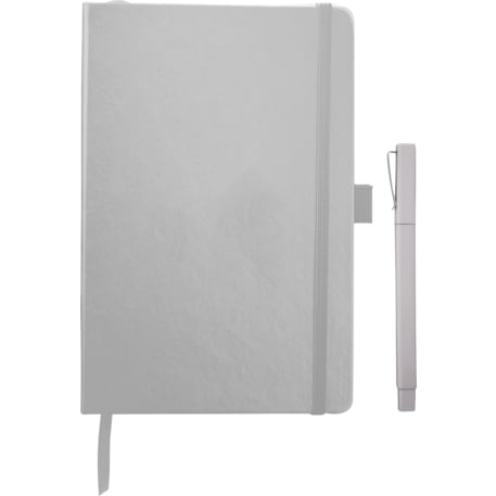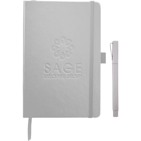 Set includes (2800-11) Nova Bound JournalBook™ and (6620-31) Ambassador Square Ballpoint. Faux, leather like hard cover journal with built-in elastic closure. Ribbon page marker and pen loop. Expandable accordion pocket. Includes 96 sheets of lined white paper.