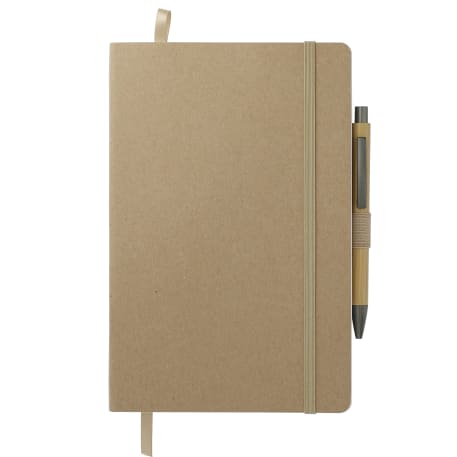 The 5.5" x 8.5" FSC Mix Stone Soft Bound JournalBook® Set includes the 5.5" x 8.5" FSC Mix Stone Soft Bound JournalBook® (2800-95) and Bamboo Quick-Dry Gel Ballpoint (1066-49). The 5.5" x 8.5" FSC Mix Stone Soft Bound JournalBook® features a FSC® Mix soft paper cover. It includes 80 sheets of lined stone paper, which is water-resistant, tearproof and noticeably smooth for a superior writing experience. It also features an elastic closure, ribbon page marker, elastic pen loop and back document pocket. And through a partnership with 1% For The Planet, one percent of sales of all EcoSmart® products are donated to environmental nonprofits. Due to the nature of the material, there may be color variances.