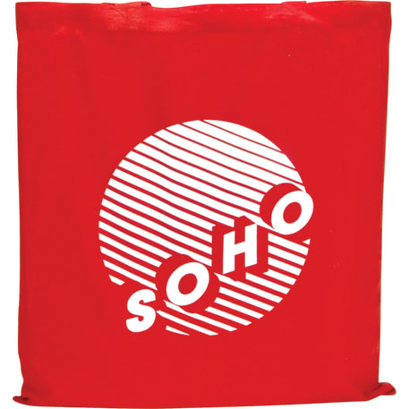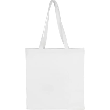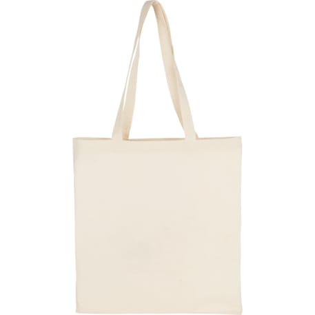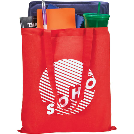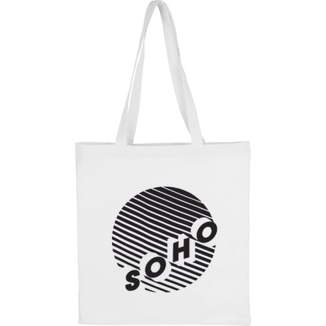 Slim design perfect for conventions and tradeshows. Open main cotton compartment with double 29" reinforced handles. Reusable and a great alternative to plastic bags. 4oz cotton weight.