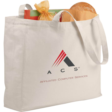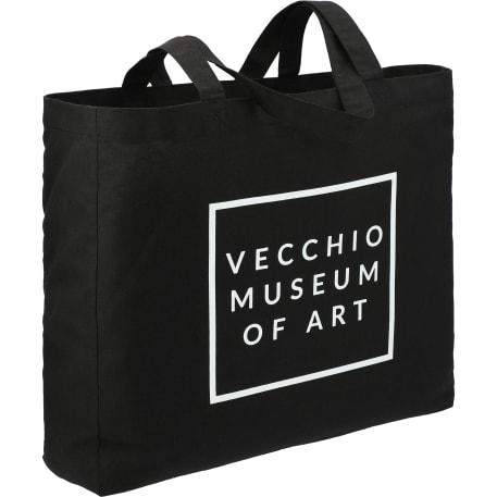 Clean design gives this tote large imprint areas and is a great option for meetings, conventions and tradeshows. Also a perfect alternative to plastic bags. Open main compartment. 11" drop handle height.