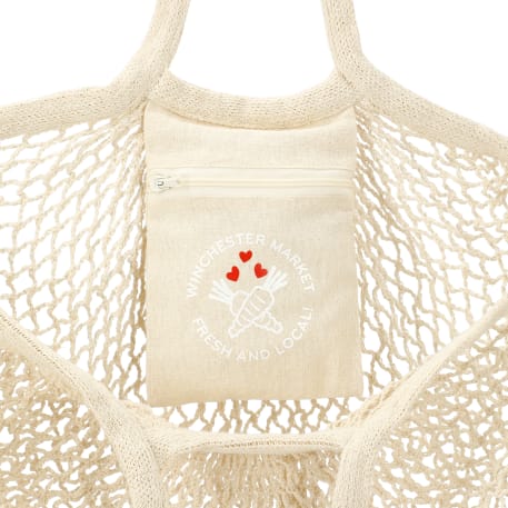 The Riviera Cotton Mesh Market Bag is the newest global trend in shopping bags. This tote is great for carrying fresh fruit and vegetables and helps you reduce your impact on the environment by eliminating plastic produce bags. This tote also features an interior zippered pocket to hold change or coupons.