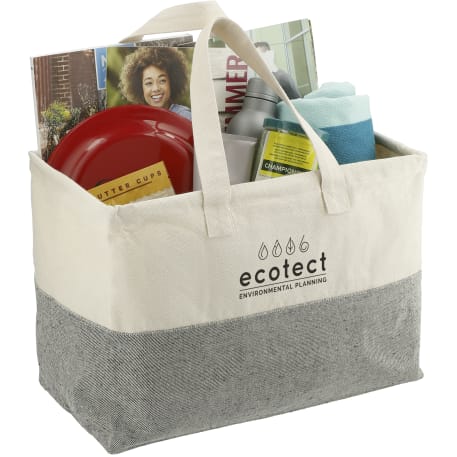The Recycled Cotton Utility Tote is versatile enough for all your needs. Use it for groceries, picnics, beach days or camping. The sturdy 10" drop handles help you carry with ease. Through a partnership with 1% For The Planet, one percent of sales of all EcoSmart® products are donated to environmental nonprofits.