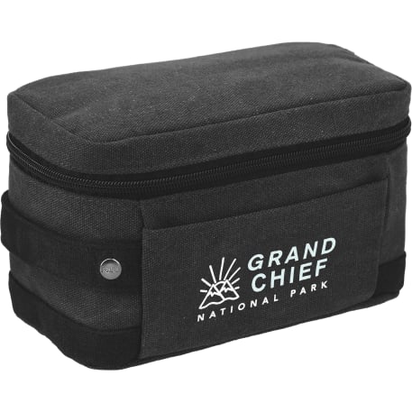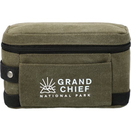 The Field & Co. Woodland Pouch is made from rugged cotton canvas. This pouch features a front slash pocket, internal zippered mesh pocket, and custom wood grain print lining.