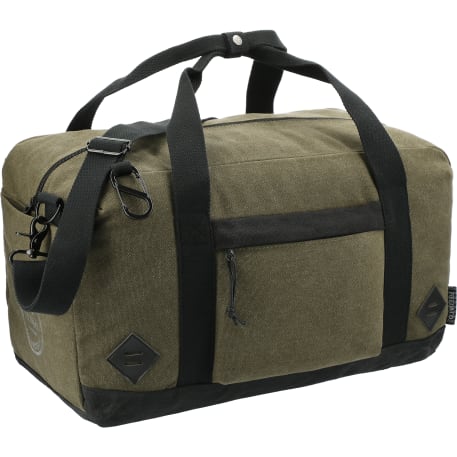 The Field & Co. Woodland Duffel is made from sturdy cotton canvas and features custom wood grain lining. This duffel includes a removable carabiner to hold your keys or favorite camp mug. It has a spacious zippered main compartment, zippered front accessory pocket, and two premium diamond lash tabs for attaching additional carabiners. Carry this duffel using the removable, adjustable shoulder strap or the webbing grab handles. The bottom is a durable waxed cotton canvas and will have a distressed look due to the waxing process.