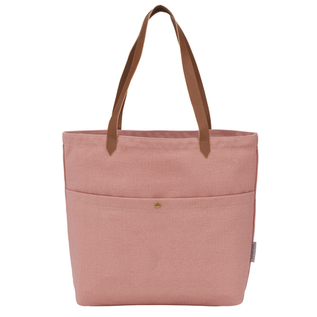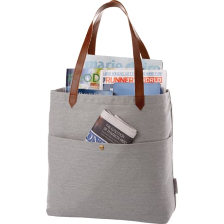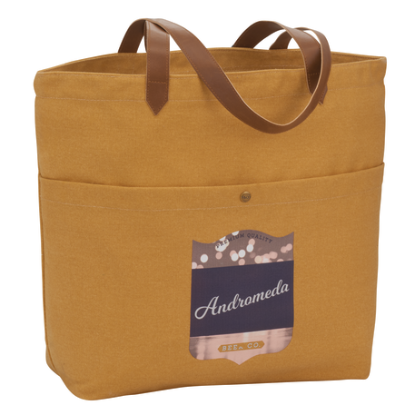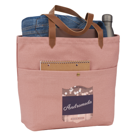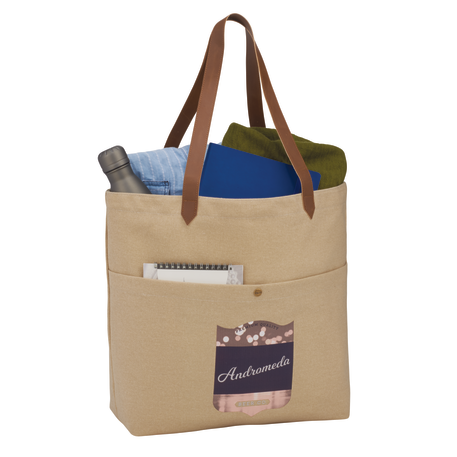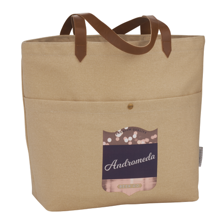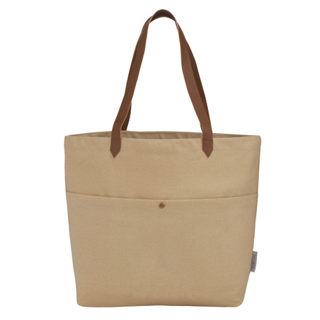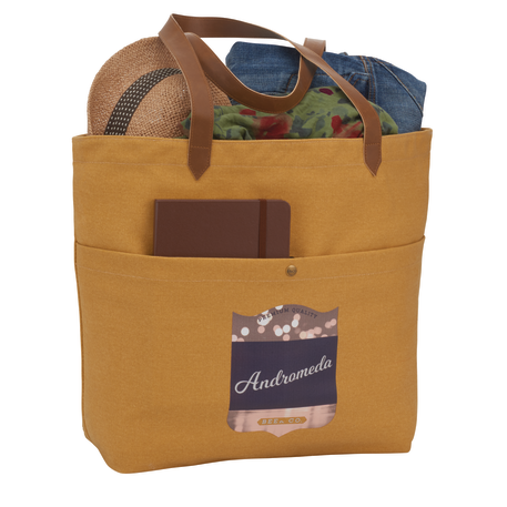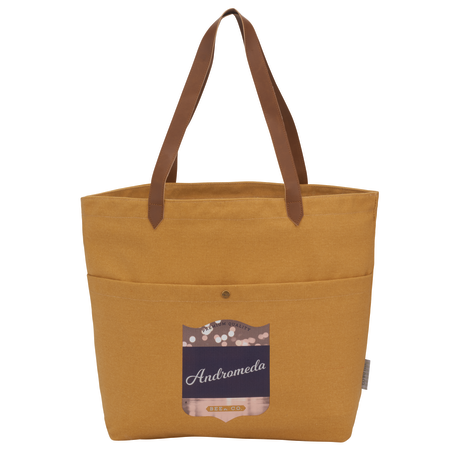 Open main compartment. Front pocket with snap closure. 12" drop vinyl handles. Durable 16 oz. cotton canvas. Disclaimer: Due to the dyes used & natural fabric, there will be slight color variations from the images shown.
