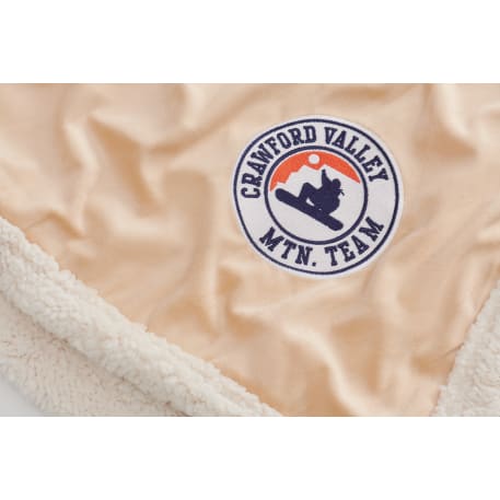 The Field & Co.® Sherpa Blanket features a classic look with timeless style. Super soft, cozy, a perfect luxurious comfort. Combined with soft velour and sherpa backing. Field & Co.® vintage branding elements and details. Blanket measures 72" x 60" unfolded and 20" x 13" folded. Free run charges for embroidery up to 10,000 stitches. This blanket is spot clean only.