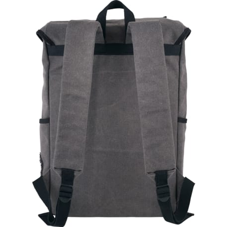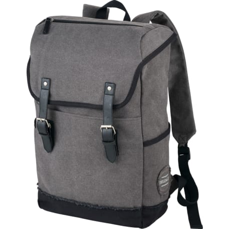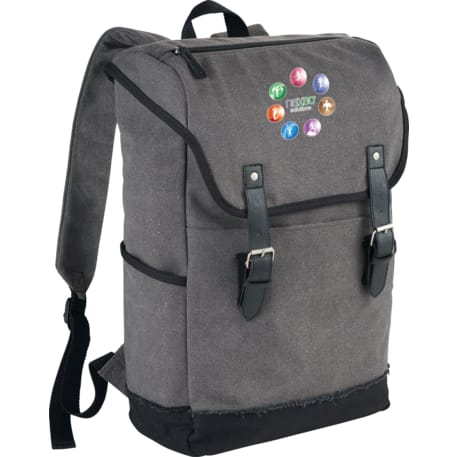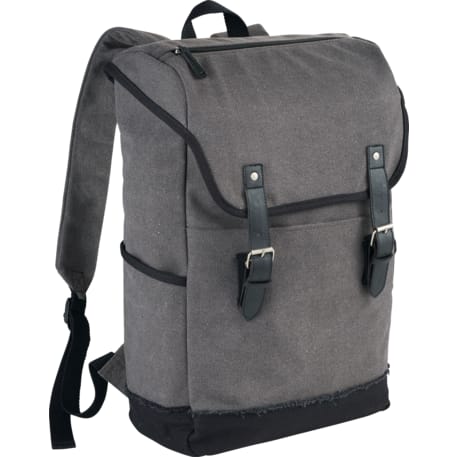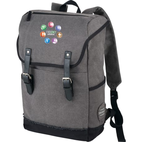 The Field & Co.® Hudson 15" Computer Backpack is part of a collection that has a gritty, urban look and feel with a modern functional design. Spacious open main compartment snaps shut with custom Field & Co. rivets. Exterior slash pockets allow you to store your water bottle or anything else you need quick access to. Black and white micro gingham print on the interior adds a stylish detail while the padded laptop compartment will keep your 15.6 inch computer safe.