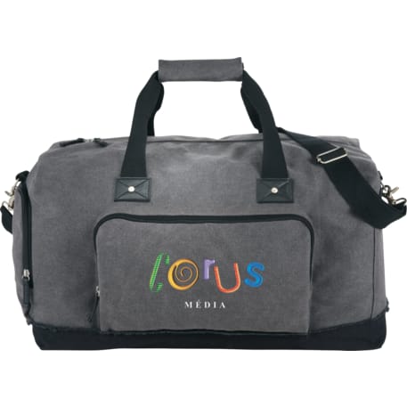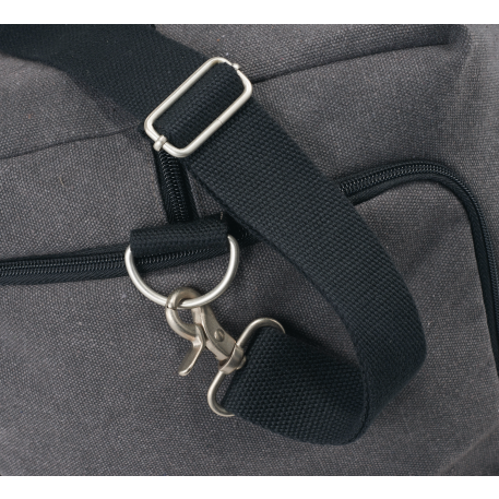 The Field & Co.® Hudson collection has a gritty, urban look and feel but with modern functional design and details. The Hudson duffel makes the perfect weekend getaway bag with it's large main compartment, dedicated shoe compartment and zippered front organizer pocket. Exterior slash pocket lets you drop in everything you need quick access to, or to store your water bottle. Black and white micro gingham print on the interior adds a stylish detail. Unique Field & Co.® branding details like the exterior cotton patch and interior label featuring the inspiration behind the collection. Removable shoulder strap gives you multiple carry options.