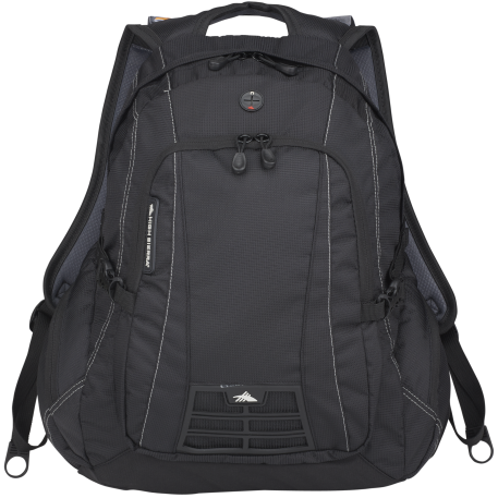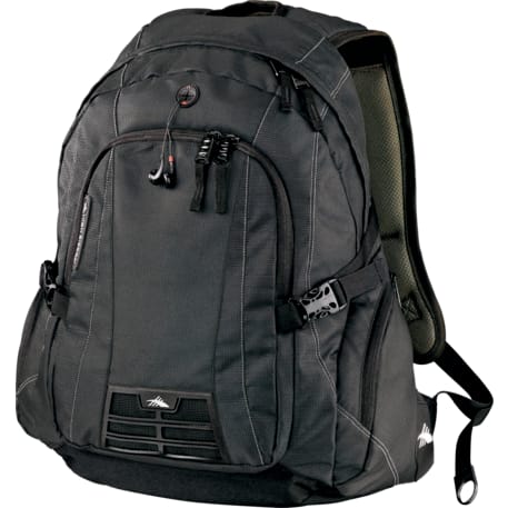 The High Sierra® Magnum 15" Computer Backpack features a padded interior computer sleeve, with a back-access zipper, that holds up to 15 inch laptop. Also comes with a deluxe organizer with pen pockets, a zippered mesh pocket and key fob and a Tricot-lined pocket with a headphone port. Zippered side pockets for accessories. Yoke-style, S-shaped Vapel™ mesh Airflow™ padded backpack straps with a suspension system, cell phone pocket and an integrated grab handle. Features a Vapel mesh Airflow padded back. Includes lifetime warranty.