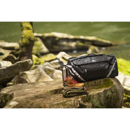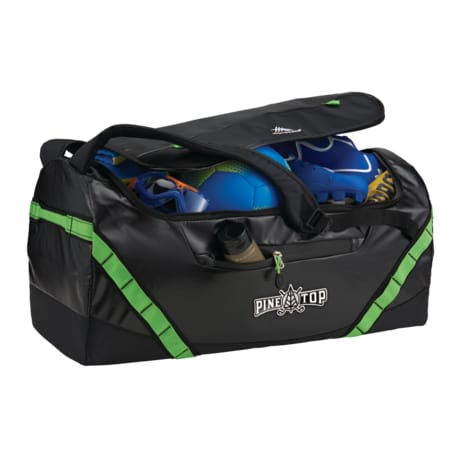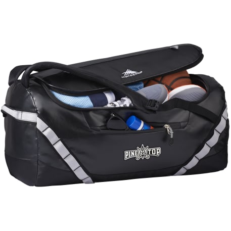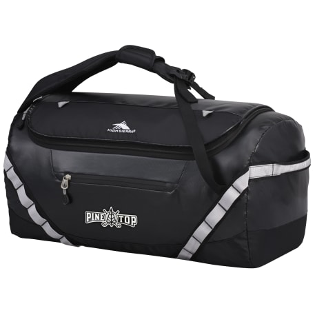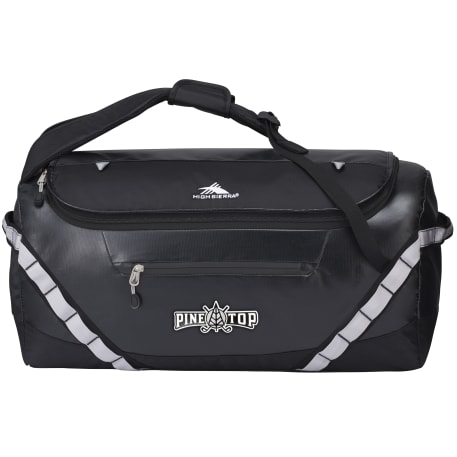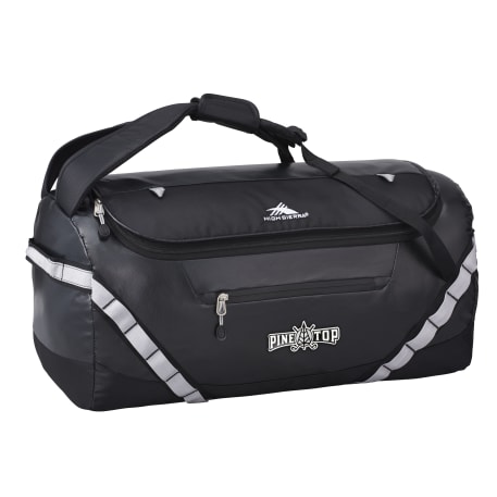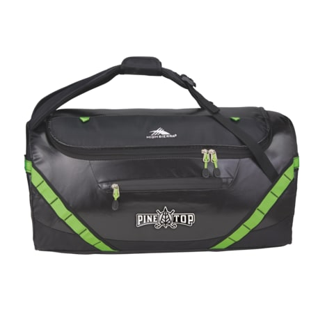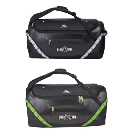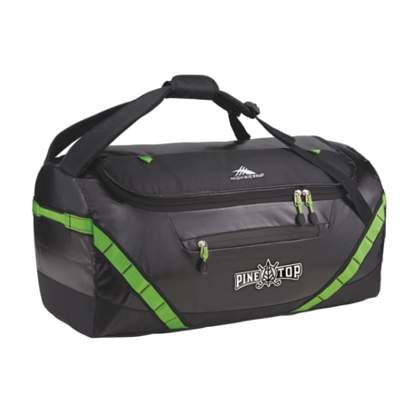 The High Sierra Kennesaw 24” Outdoor Duffel can be carried as a duffel or a backpack. This versatile duffel is made from durable and lightweight coated water resistant fabric. Organize your belongings easily in the large main compartment, interior zippered mesh pocket and front zippered accessory pocket. This duffel also features a front panel daisy chain for attaching gear and convenient grab handles on top and side.