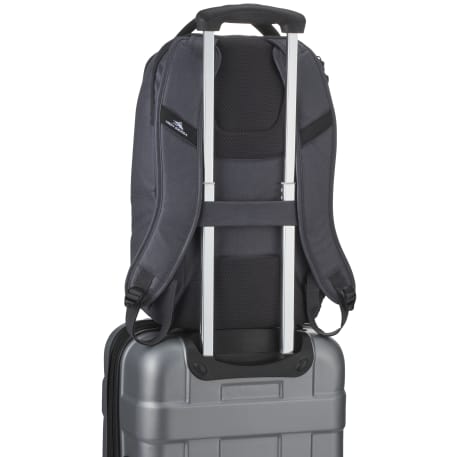 The High Sierra Slim 15" Computer backpack is made from durable and easy to clean water-resistant material. Get ample storage with the dedicated, padded 15" laptop compartment, the roomy main compartment with padded tablet sleeve and the smaller compartment with organization panel. This backpack also features a front vertical zippered pocket for easy grab-n-go. Carrying this bag will be a breeze with the mesh padded back panel with trolley pass-through and padded and adjustable shoulder straps. Included lifetime warranty.