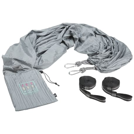 This High Sierra packable hammock is a two-person, 500lb capacity hammock made of parachute-grade 210T nylon material. Also included are tree-friendly, easy-to-use hanging straps that don't require the user to tie a knot, and have 5 adjustable hanging positions using loops and steel carabiners. Hammock opens to 55"x105", but easily folds down small enough to fit in most bags and weighs just 1.7lbs.