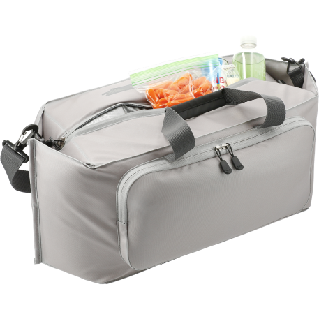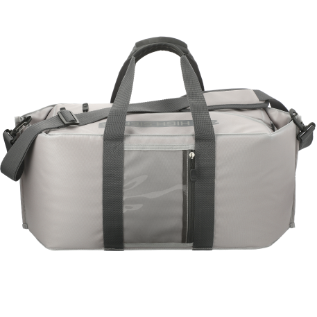 The High Sierra 24 Can Duffel Cooler is a fully insulated cooler with a wide opening top for all of your cold beverages. The sides are also wipe able. Includes detachable shoulder strap and grab handles.