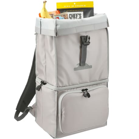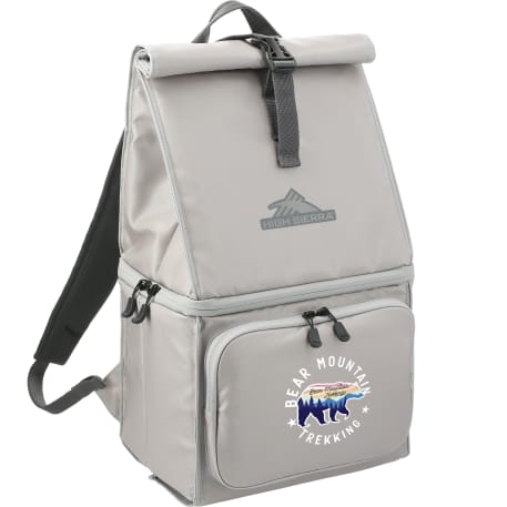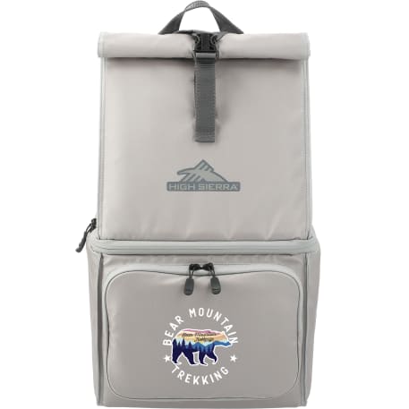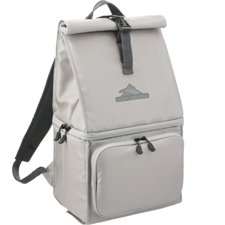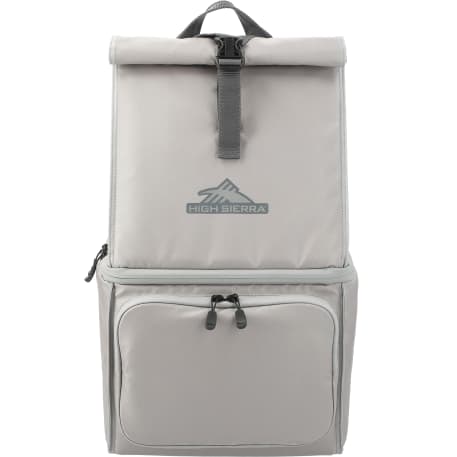 The High Sierra 12 Can Backpack Cooler is the perfect balance for an all-in-one bag/cooler combo. The top section is a non-insulated compartment with a roll top opening. The bottom compartment is a fully-lined cooler compartment for drinks and snacks. The outer material and cooler lining are both wipe able.