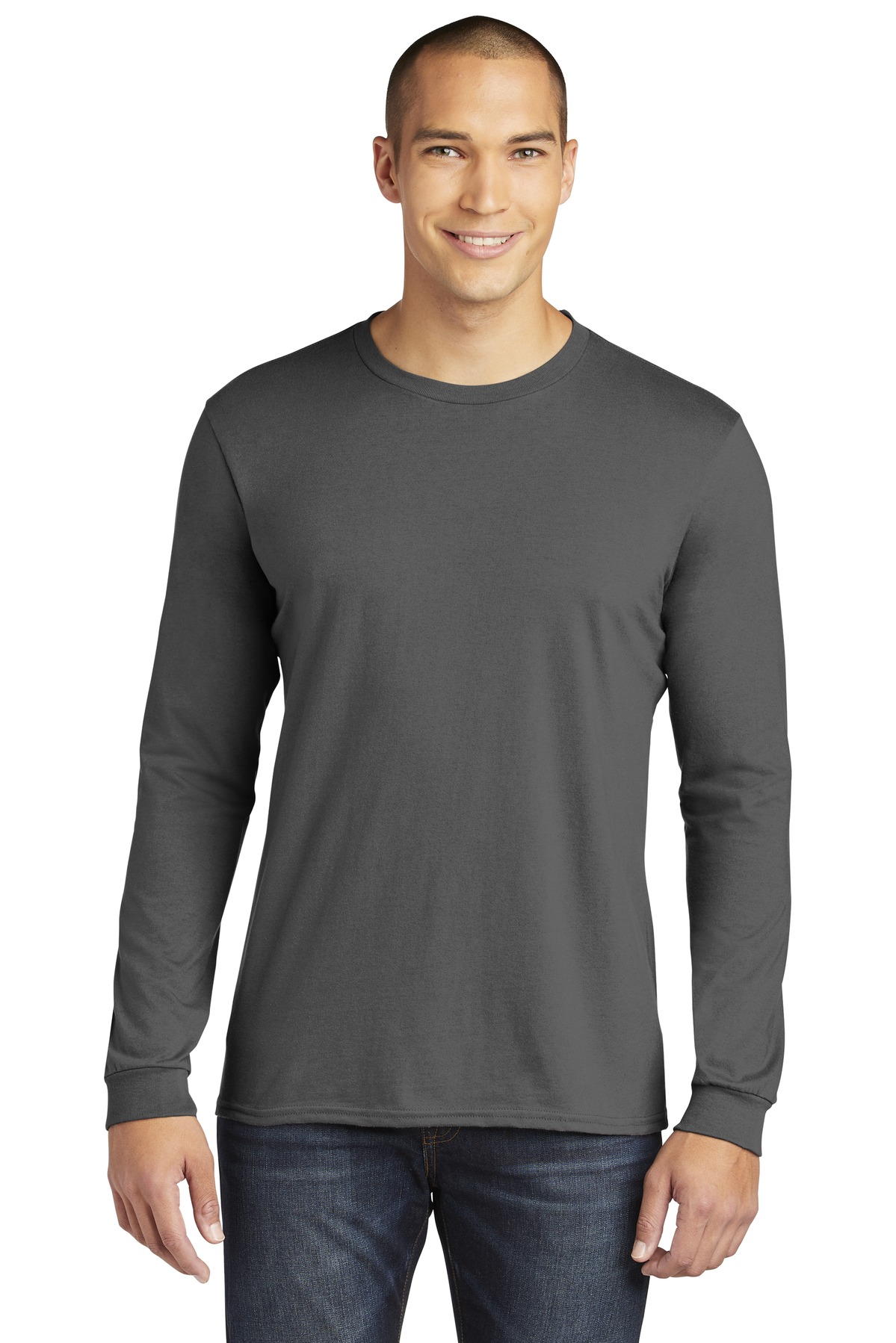 4.3-ounce 100% combed ring spun cotton 65/35 poly/ring spun cotton (Heather Blue Heather Green Heather Purple) 90/10 ring spun cotton/poly (Heather Grey) TearAway label Seamed collar Shoulder-to-shoulder taping Rib knit cuffs Double-needle sleeves and hemSemi-fitted tubular bodyPlease note: This product is transitioning from Anvil labels to Anvil by Gildan labels. Your order may contain a combination of both labels.